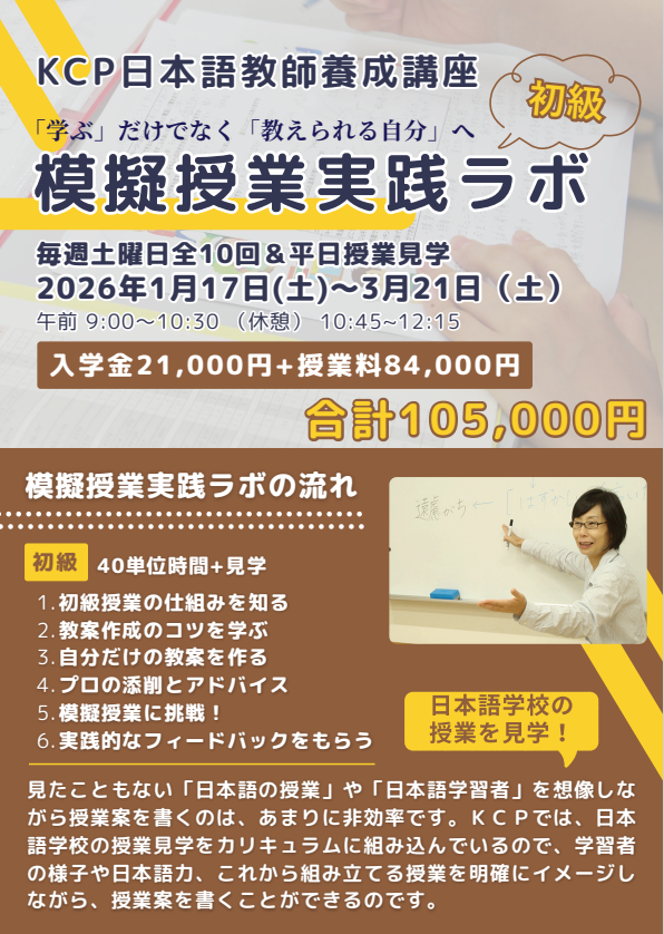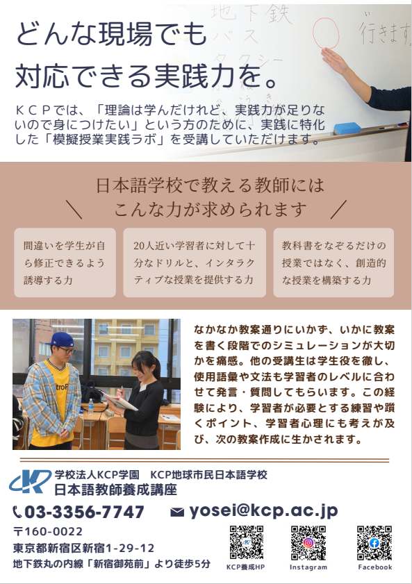 さらに、KCP地球市民日本語学校の本物の留学生クラスを見学し、実際の現場を体感できます。